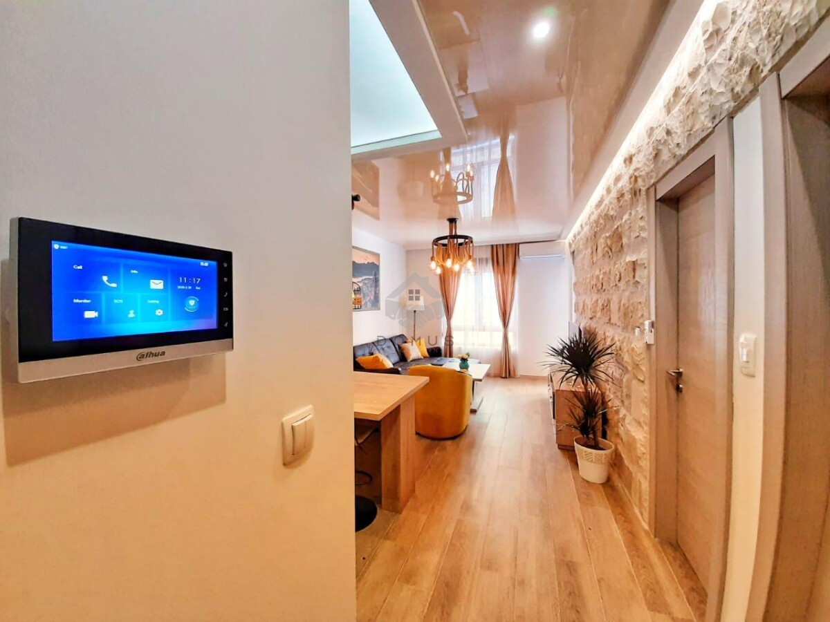 Riječ je o komfornom jednosobnom stanu, koji je kompletno namješten modernim, kvalitetnim i lijepim namještajem. Prelijepo je osvijetljen i topao, i maksimalno prostorno organizovan. Sastoji se od dnevnog boravka, trpezarije, kuhinje, spavaće sobe, hodnika, kupatila i terase.