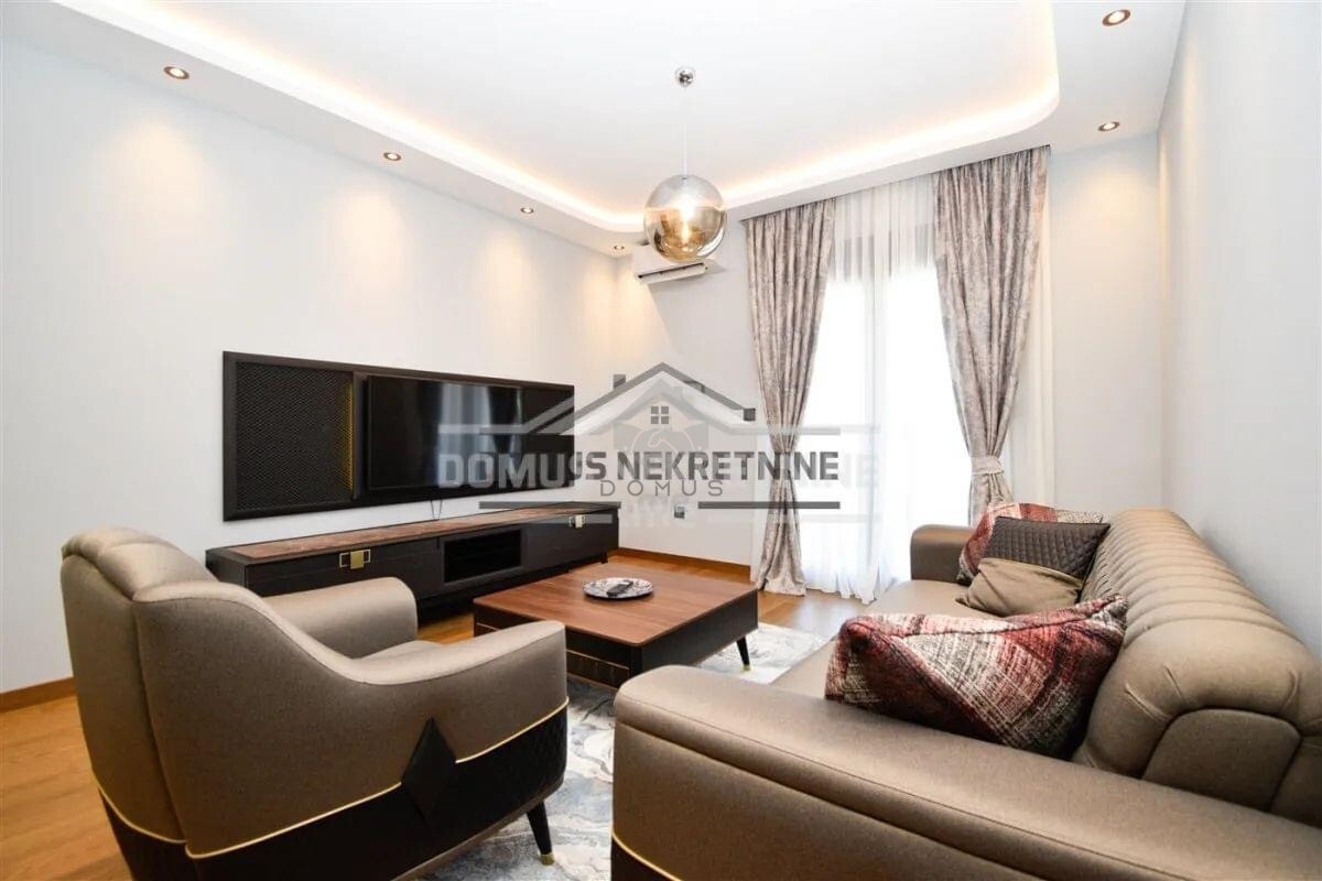 Riječ je o novom i luksuzno namještenom stanu, koji se sastoji od dnevne sobe, trpezarije, kuhinje, spavaće sobe, hodnika, kupatila i terase. Veoma je komforan, funkcionalan i lijepo osvijetljen, sa odličnim rasporedom.