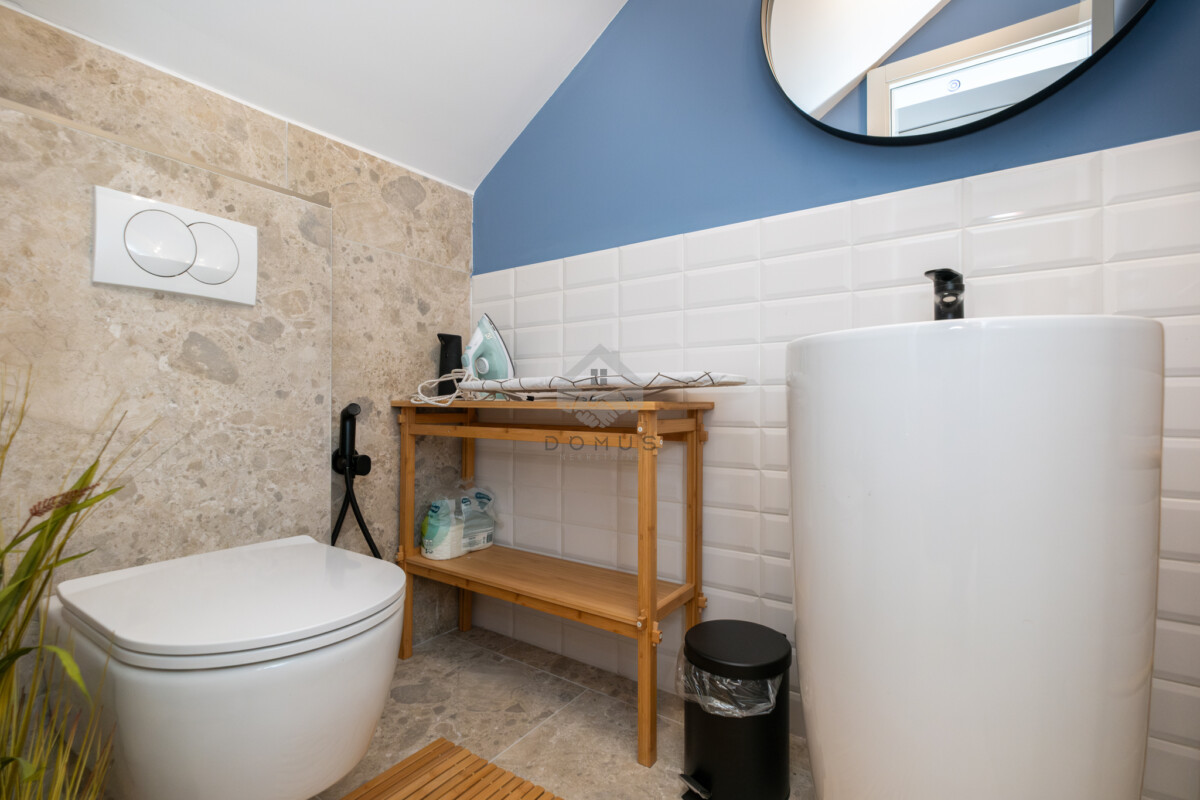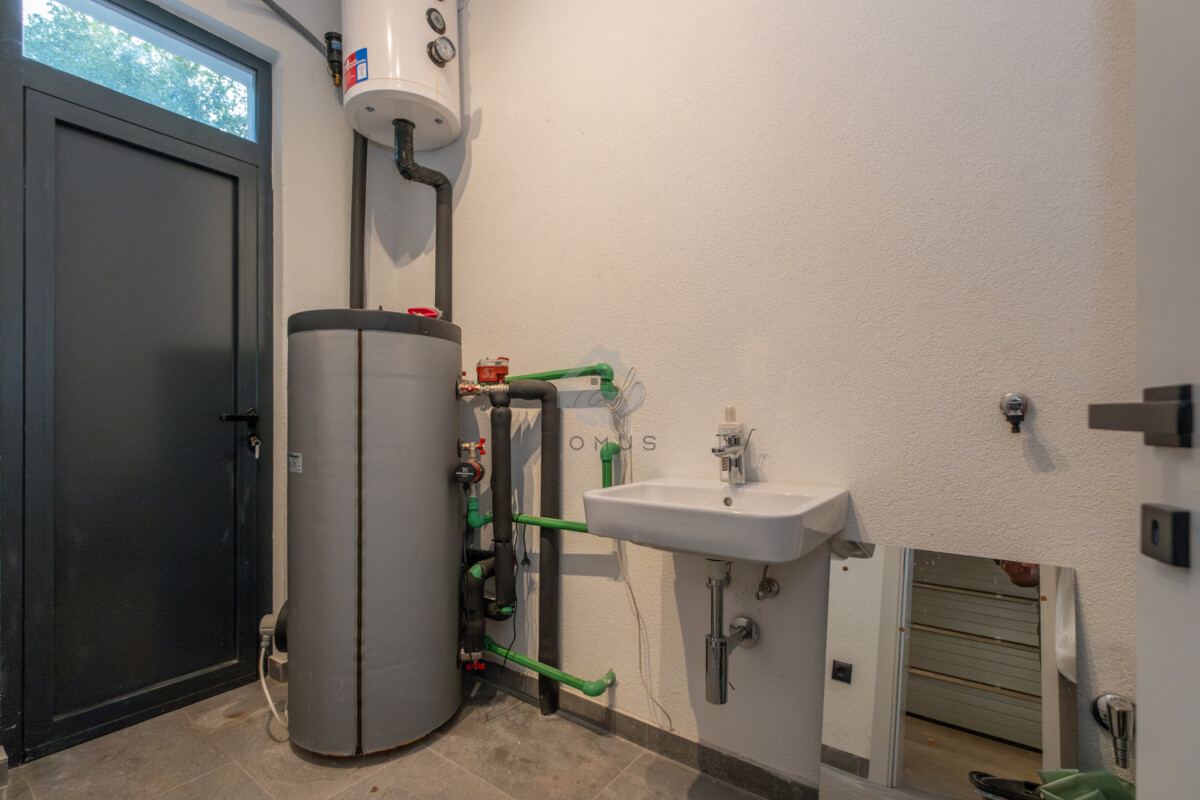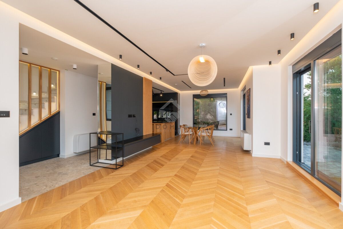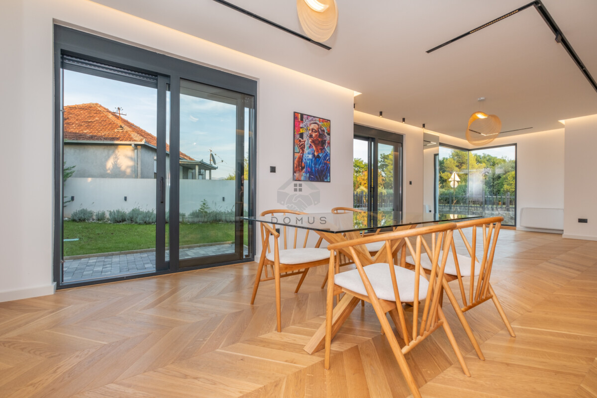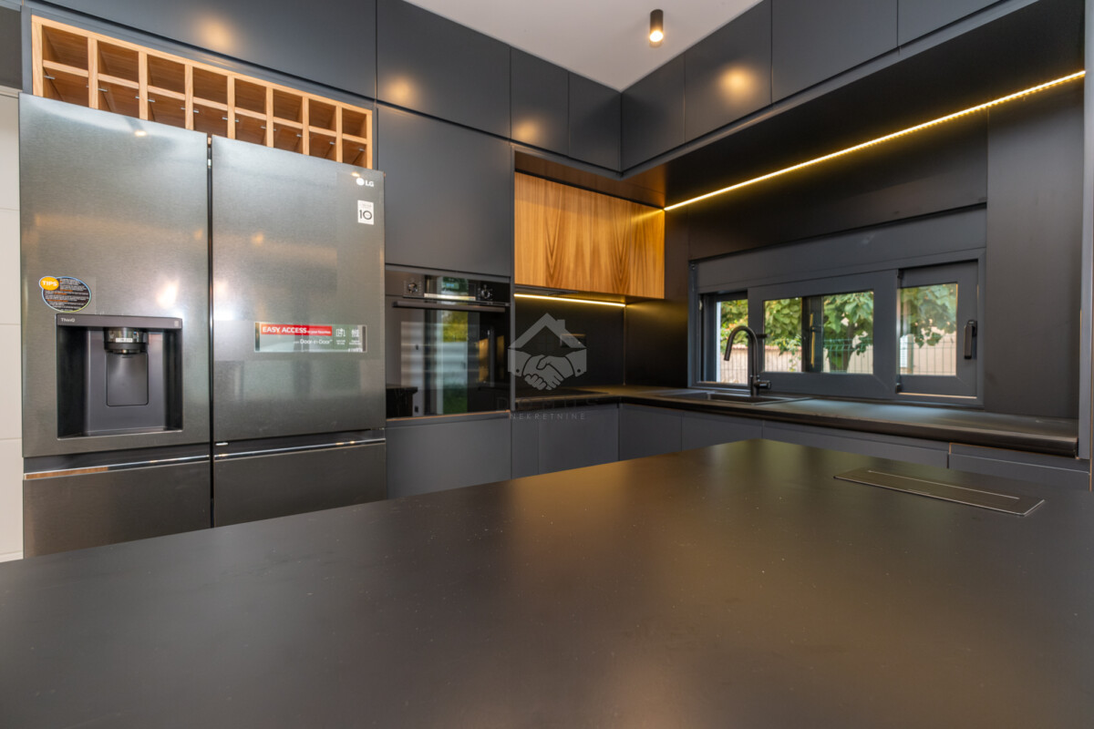 Kuća raspolaže sa 150 m² stambenog prostora, garažom za dva vozila sa punjačem za električna vozila, te bogatim spoljašnjim sadržajima: bazen, više terasa i krovna terasa od 70 m² sa roštilj zonom, idealna za uživanje i opuštanje.
